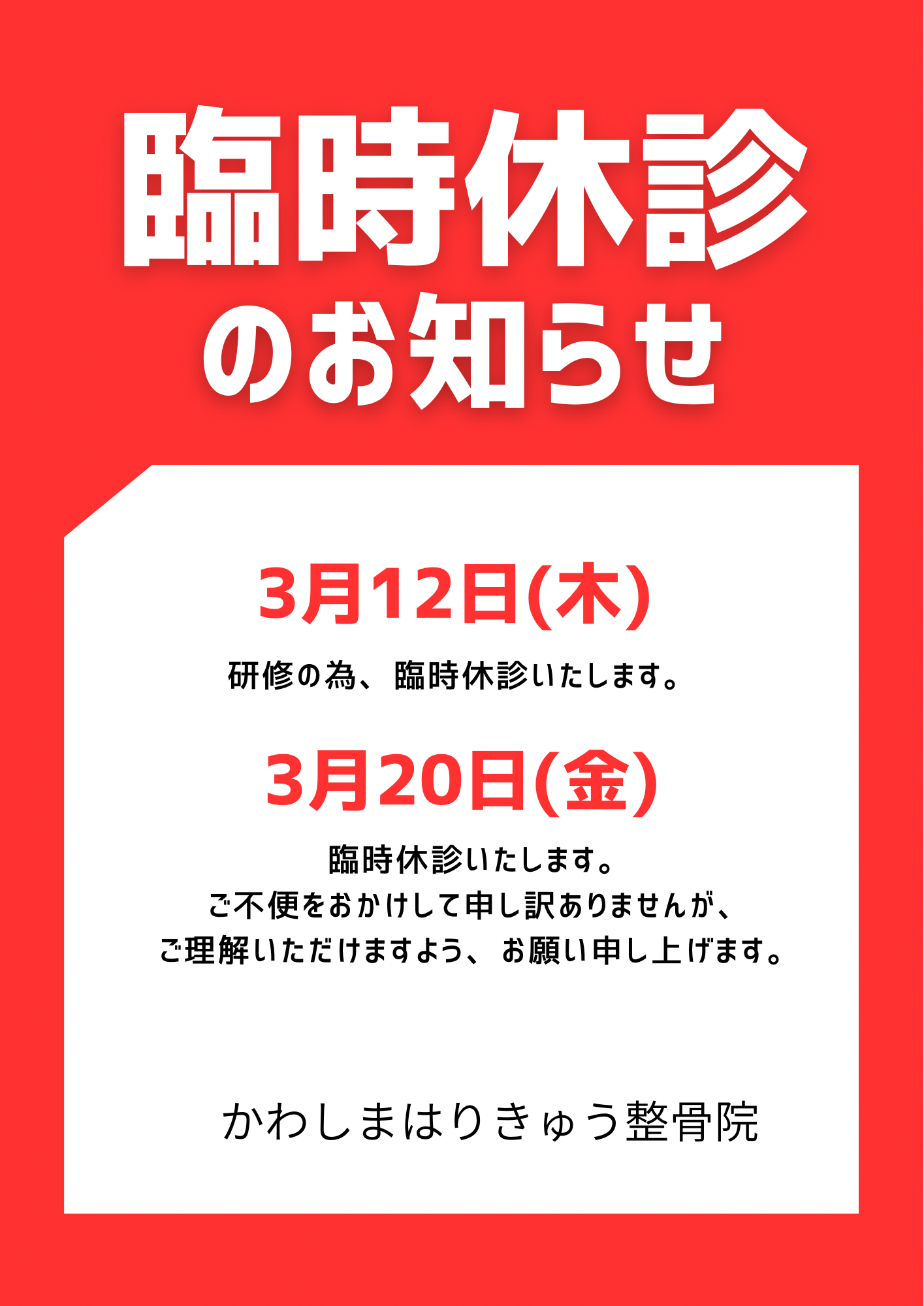 3月の臨時休診日のお知らせです。