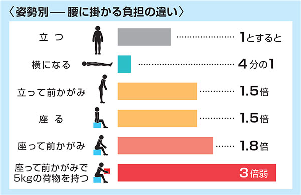 立っている姿勢の腰の負担を 1 とすると 座った姿勢は な、なんと「1.5倍」