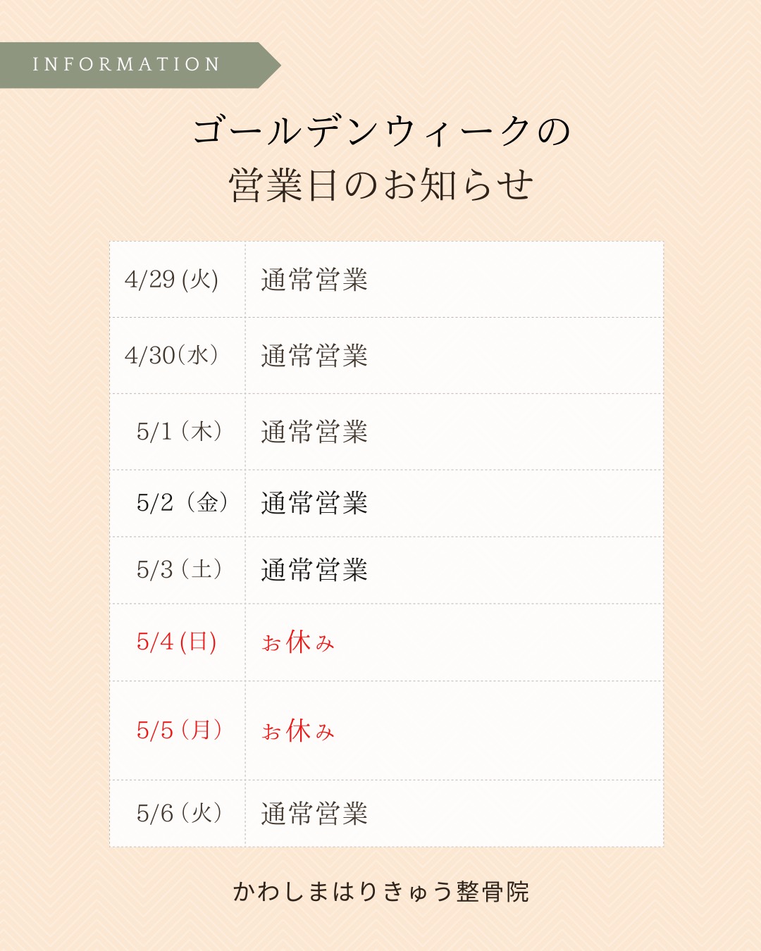 いつもかわしまはりきゅう整骨院野間院をご利用いただきありがとうございます。