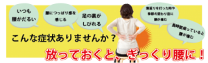 誰にでも ある日突然、いきなり起きる可能性があります。正式には「急性腰痛症」や