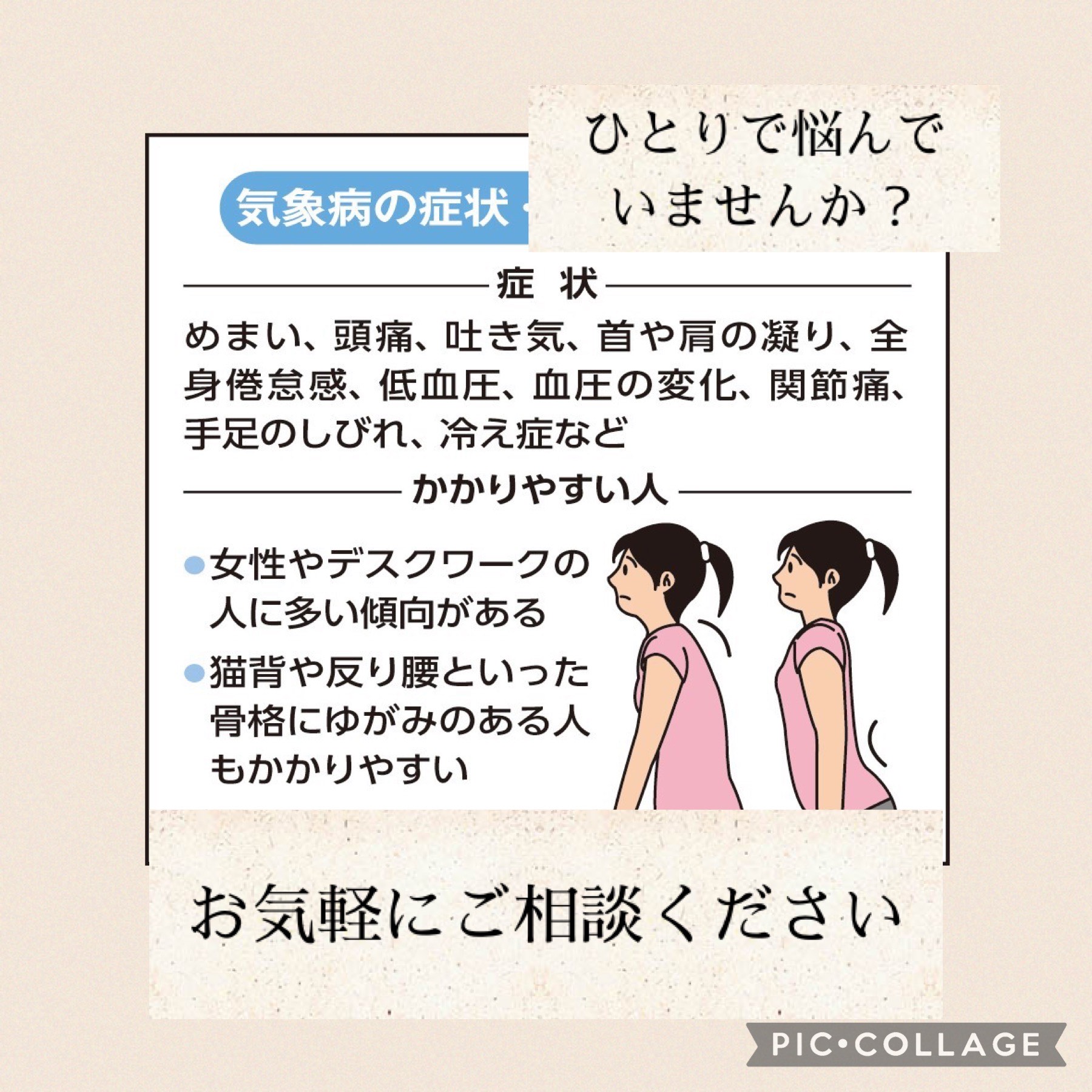 お身体は、常に外側から圧力(重力)を受けています。ところが雨や曇り(低気圧)になるとお身体の内圧が高くなるため